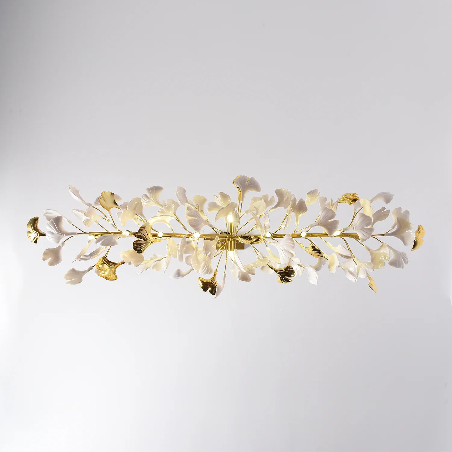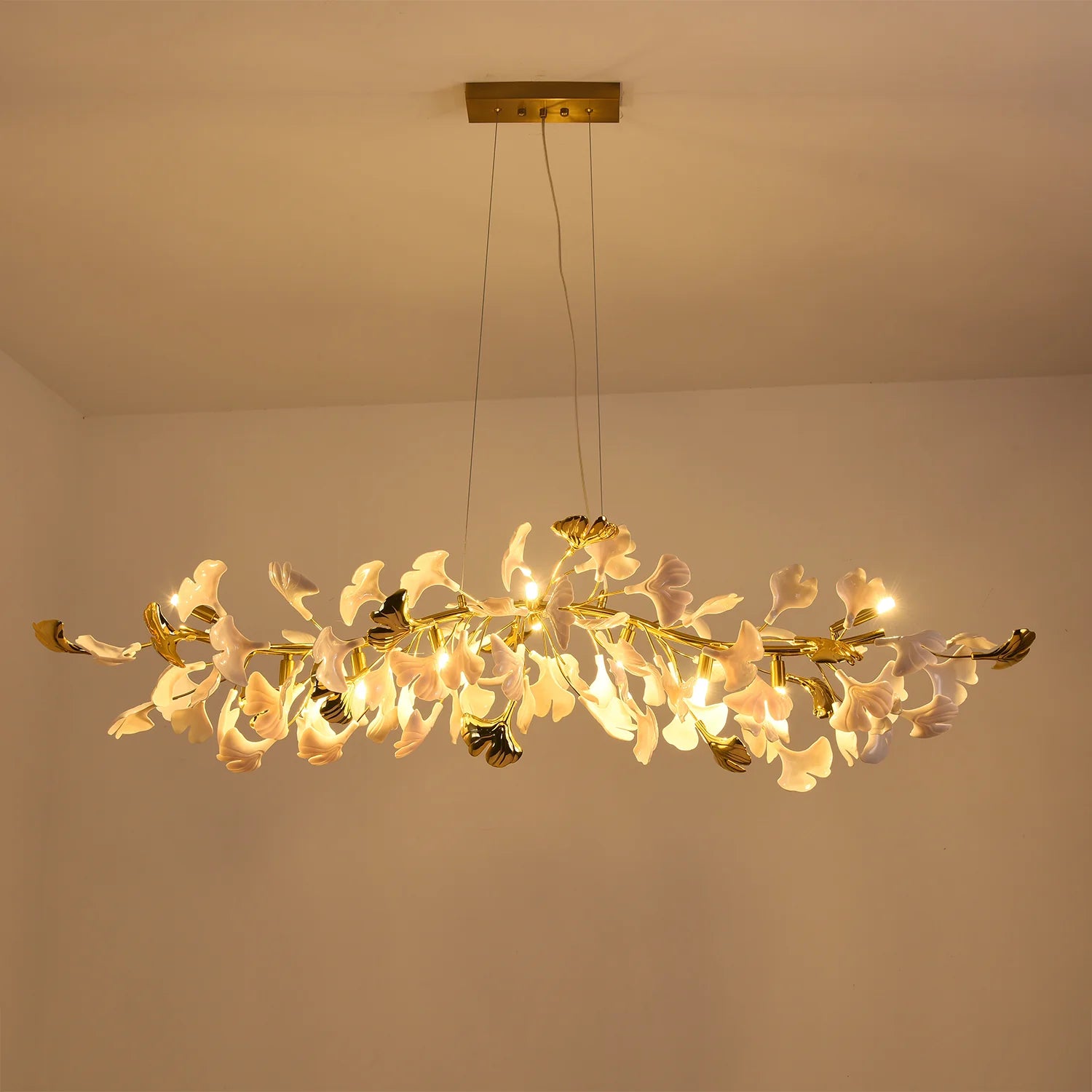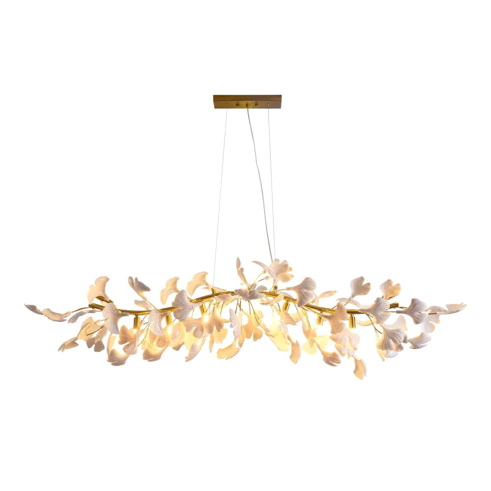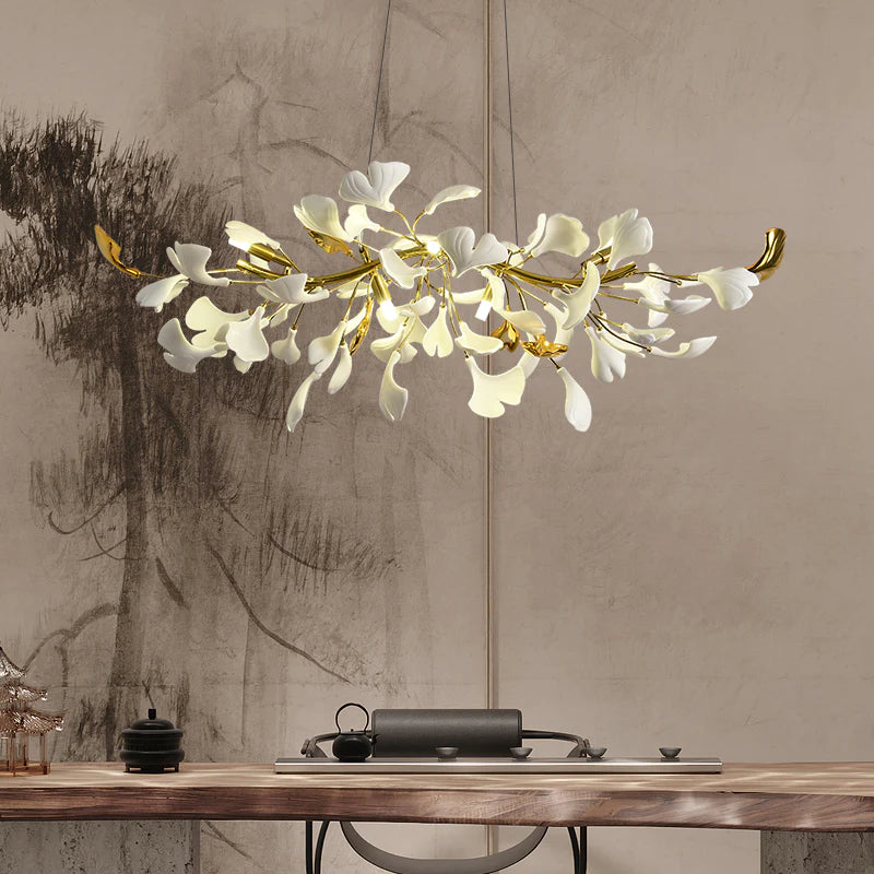 This ceramic ginkgo tree petal chandelier shows its luxurious style in overall design, material, and manufacturing technology. The lamp body is covered with exquisite ceramic petals, which reflects the perfect combination of lighting design and natural plants.