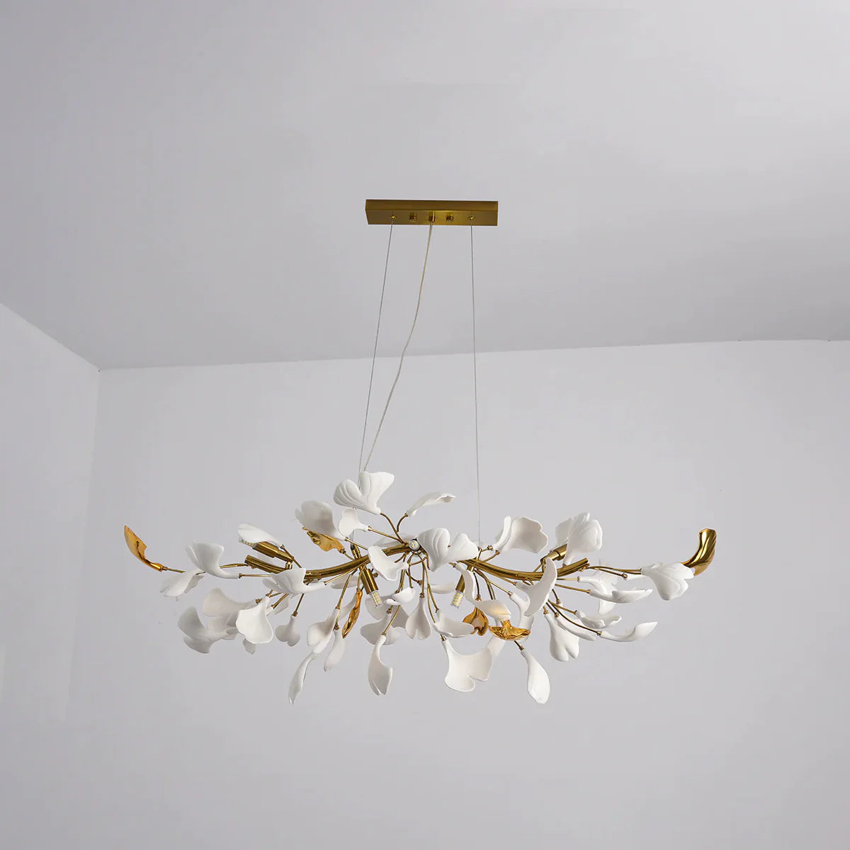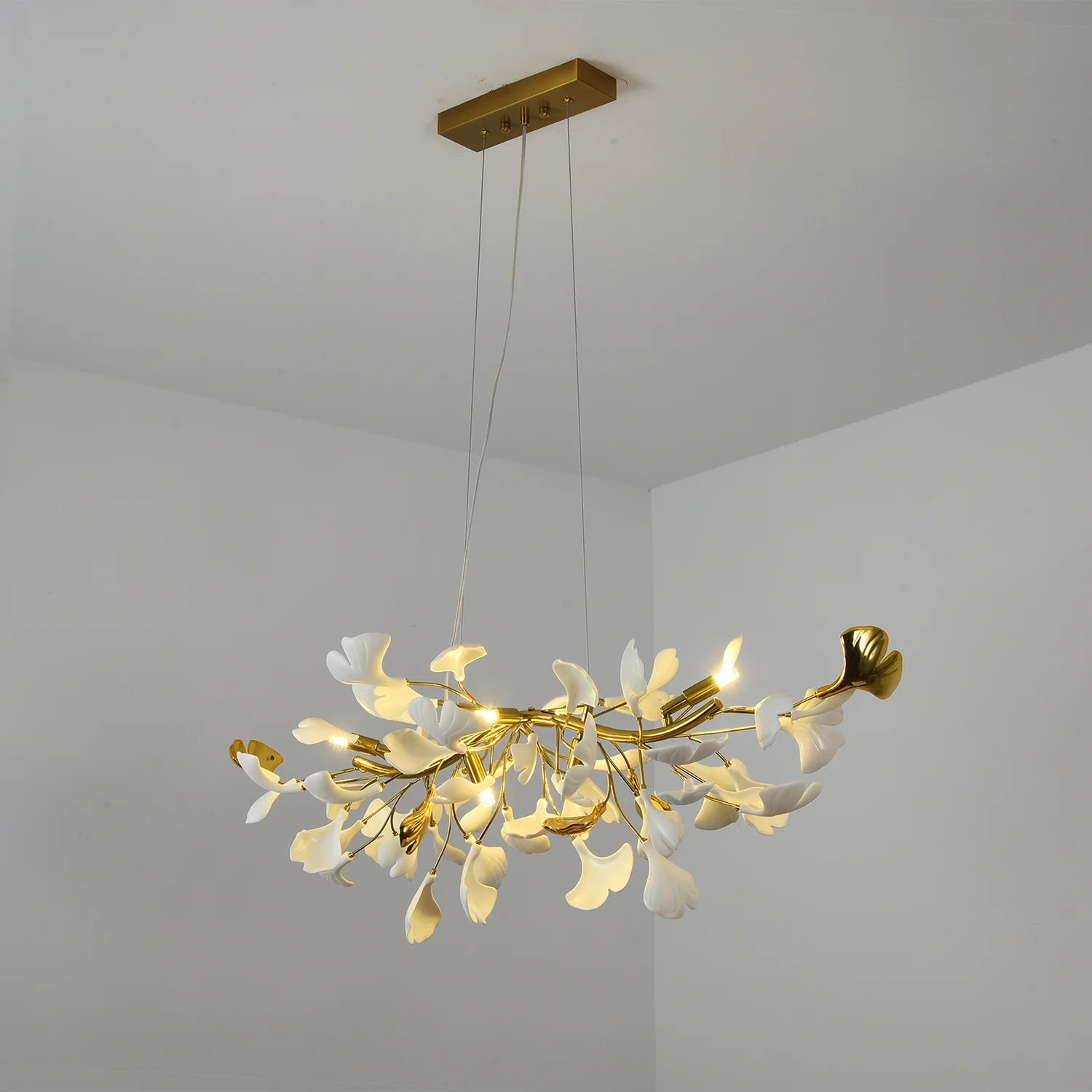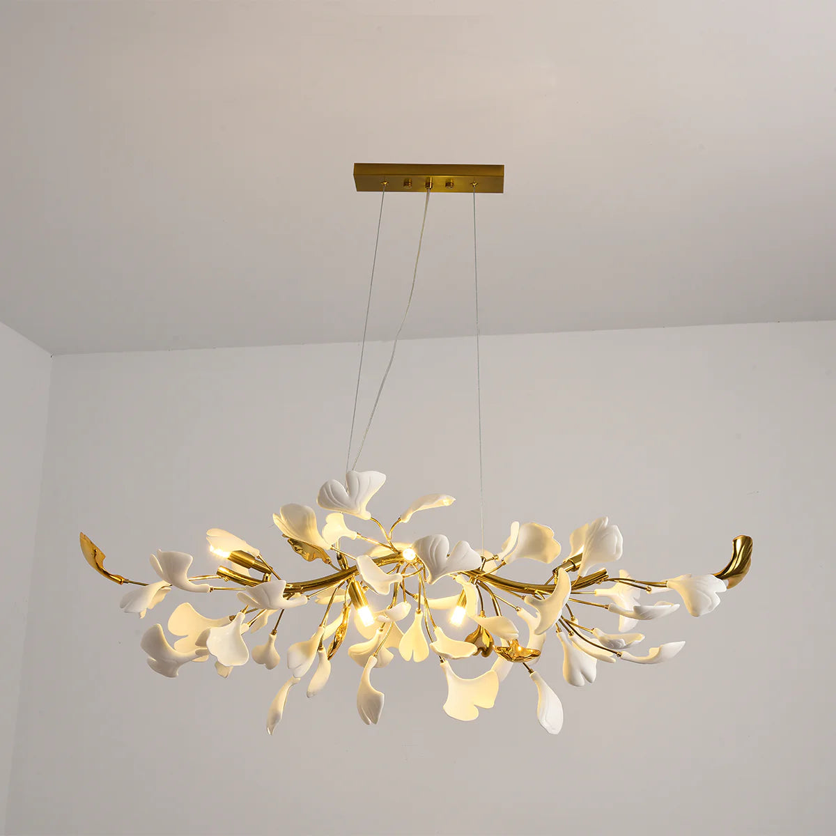 This ceramic ginkgo tree petal chandelier shows its luxurious style in overall design, material, and manufacturing technology. The lamp body is covered with exquisite ceramic petals, which reflects the perfect combination of lighting design and natural plants.