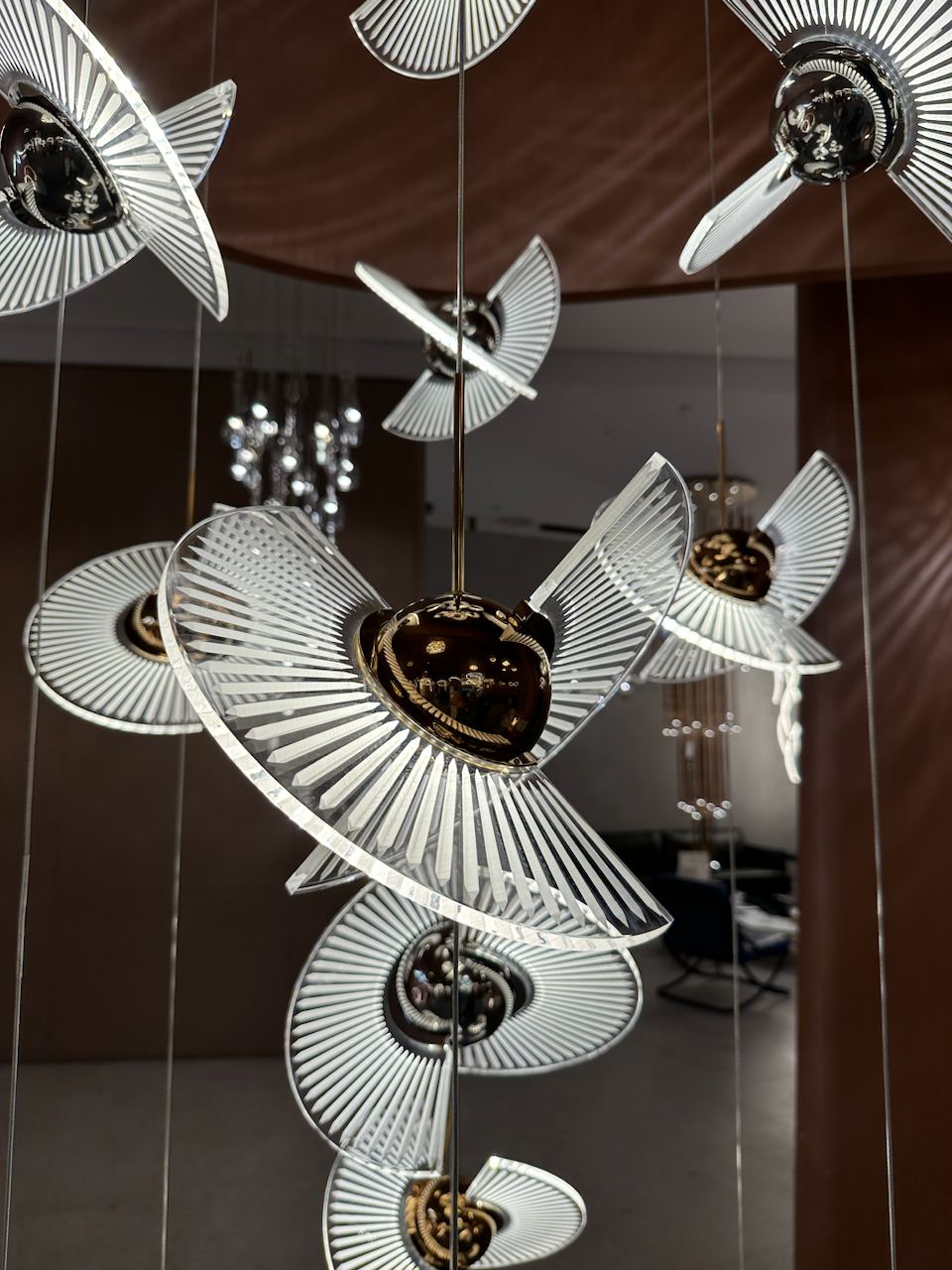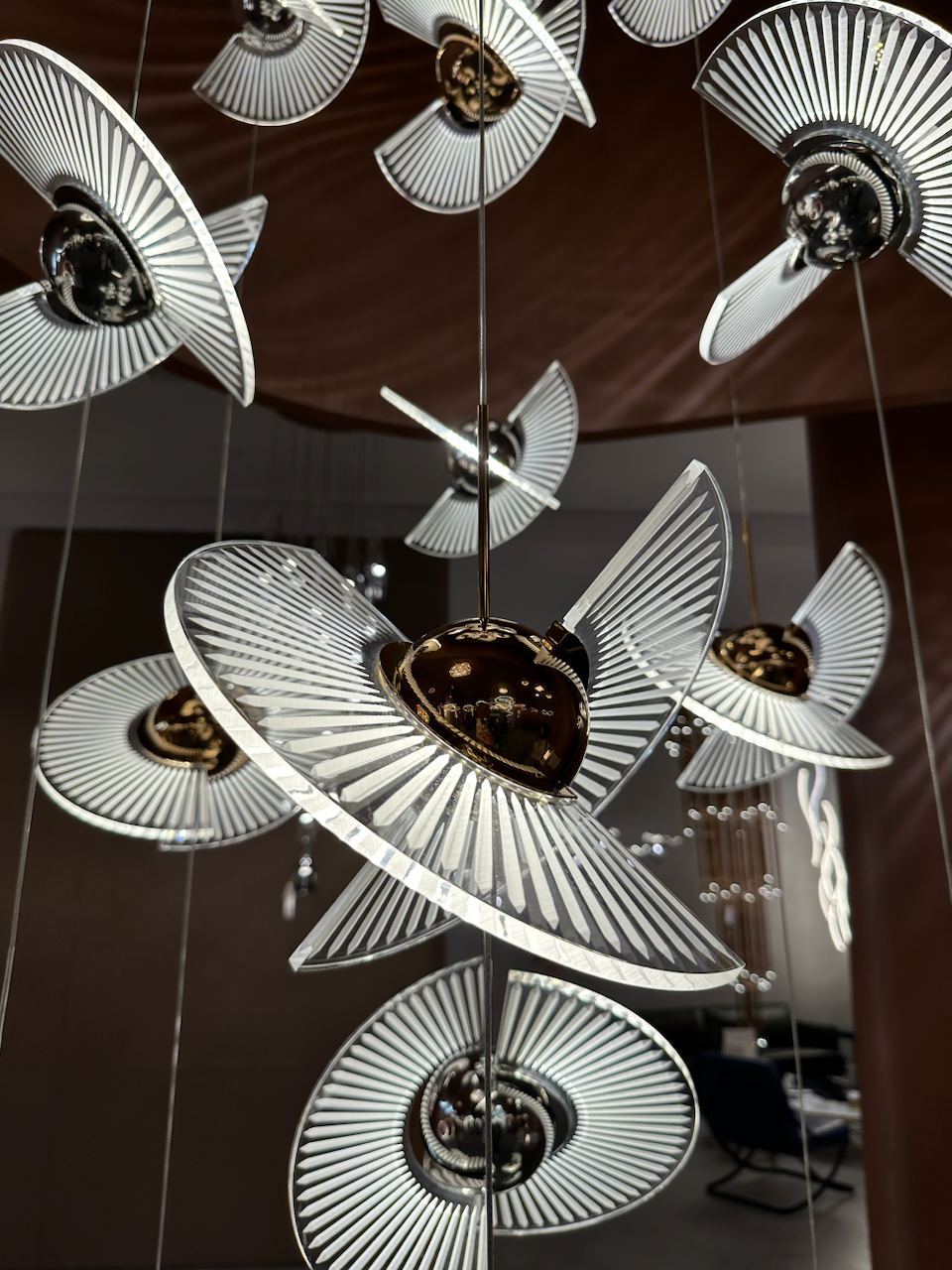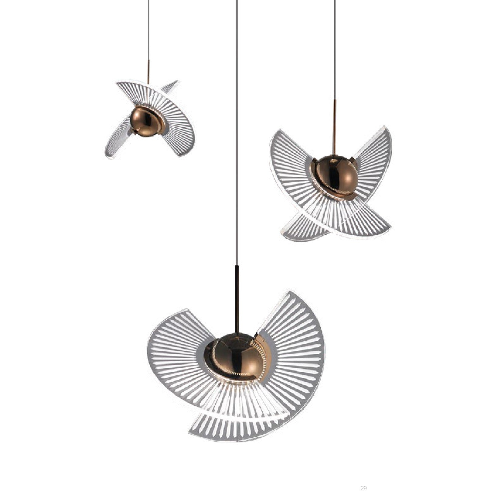 NITCH by Rodesigne is a pendant lamp with a metal base in a shade of your choice (brass/chrome) and PMMA shades of unusual shape. The product has a non-trivial design in a modern style.